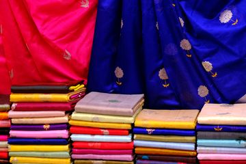 Chanderi handloom products are crafted from fine silk or cotton-silk blends, known for their lightweight texture, sheer finish, and elegant feel. Originating from Chanderi, Madhya Pradesh, these handwoven fabrics feature traditional motifs and are ideal for sarees, dupattas, and garments with a rich, graceful appeal.